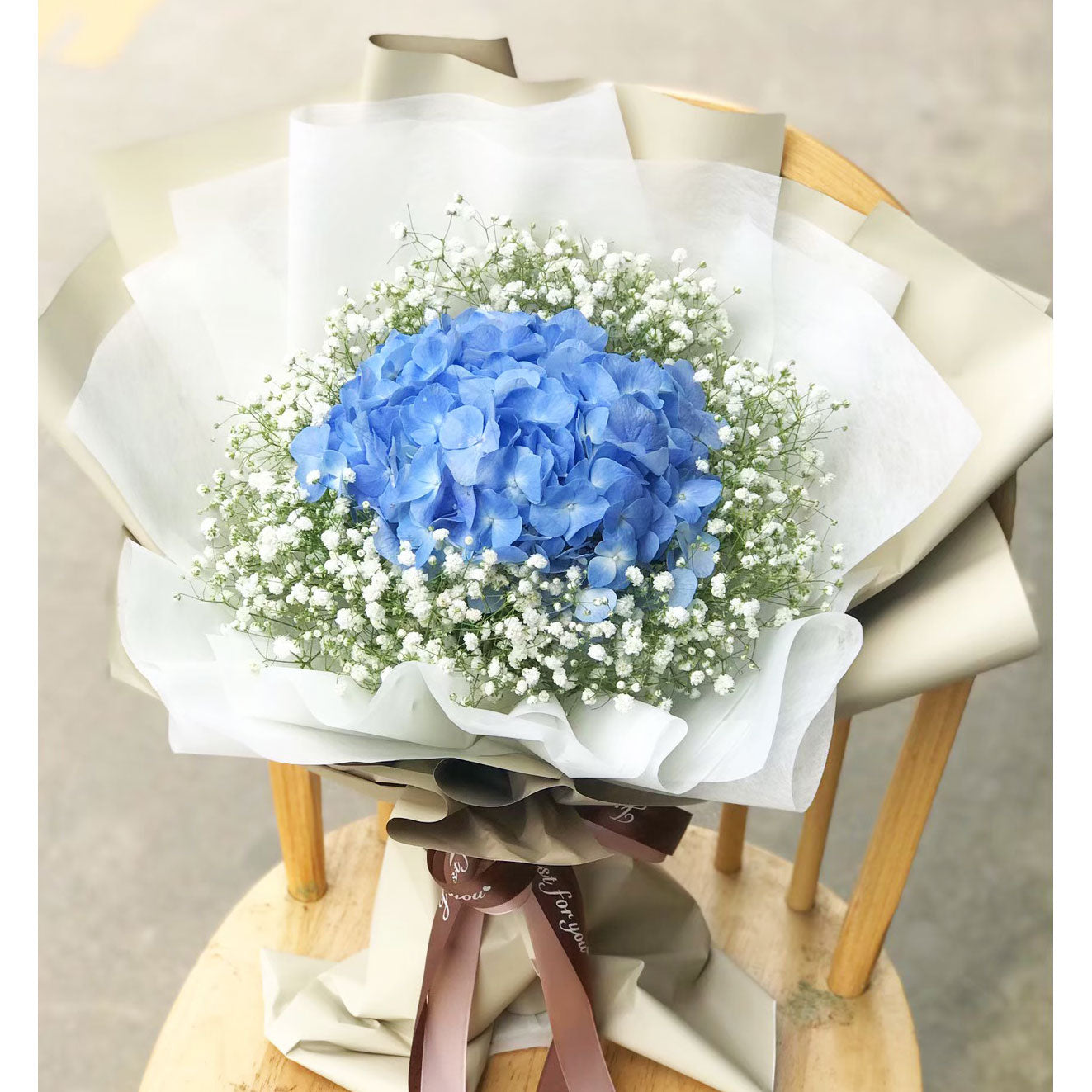 "Blue Love" bouquet of blue hydrangea and white gypso - Phuket